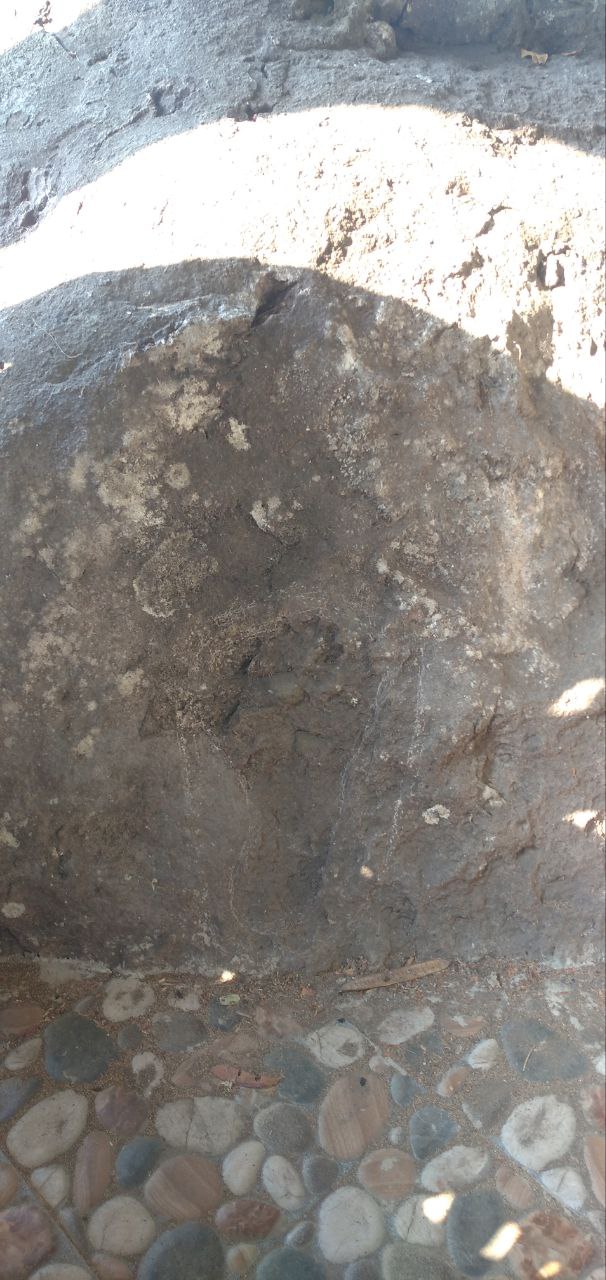 Bekas telapak kaki dengan panjang 50 sentimeter dan lebar 30 sentimeter ini tampak di sebuah batu dan hingga saat ini masih tertata rapi persis di sebelah barat kampung adat. Kampung Leuhoe sendiri dikelilingi hutan lindung yang masih dikeramatkan oleh masyarakat setempat.